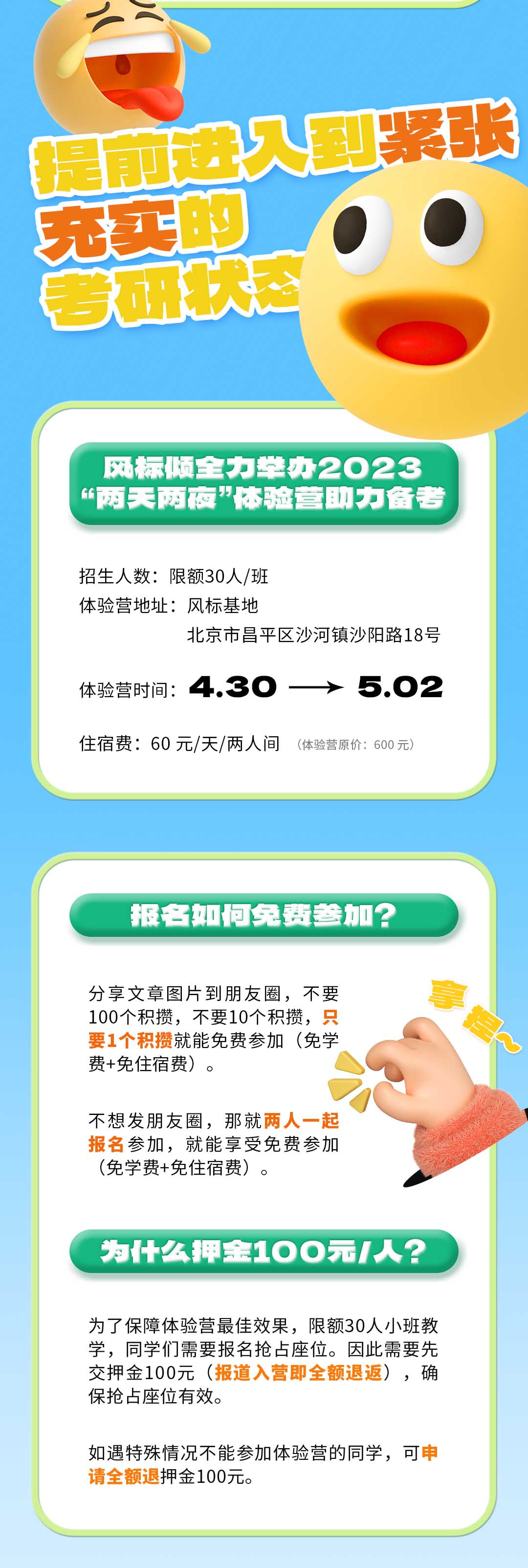 風(fēng)標(biāo)24工業(yè)設(shè)計(jì)考研五一“兩天兩夜”免費(fèi)體驗(yàn)營(yíng)來(lái)啦! 發(fā)布時(shí)間:2023-04-14 風(fēng)標(biāo)24工業(yè)設(shè)計(jì)考研五一“兩天兩夜”免費(fèi)體驗(yàn)營(yíng)來(lái)啦! 上一篇:考研寄宿自習(xí)營(yíng)招募營(yíng)員啟動(dòng) 下一篇:0元購(gòu)“五節(jié)課”搞定《工業(yè)設(shè)計(jì)史》(何人可版)