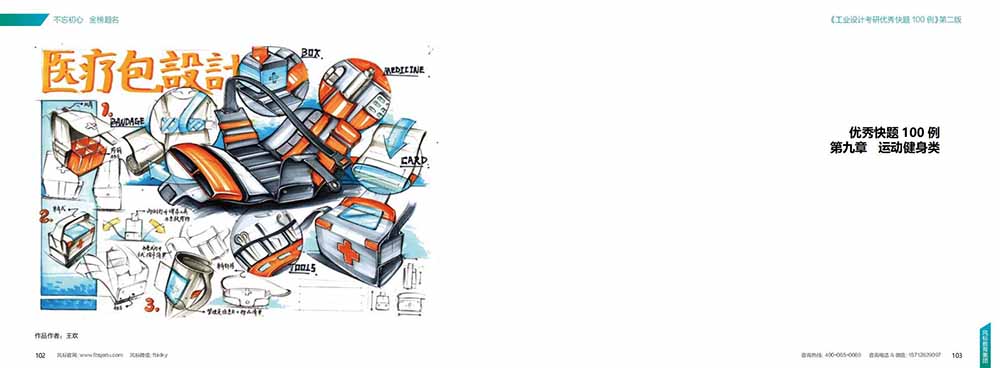 《工業(yè)設(shè)計(jì)考研手繪-優(yōu)秀快題100例》第二版作品匯集了近兩年風(fēng)標(biāo)高分狀元學(xué)員的樣卷和老師的范畫。