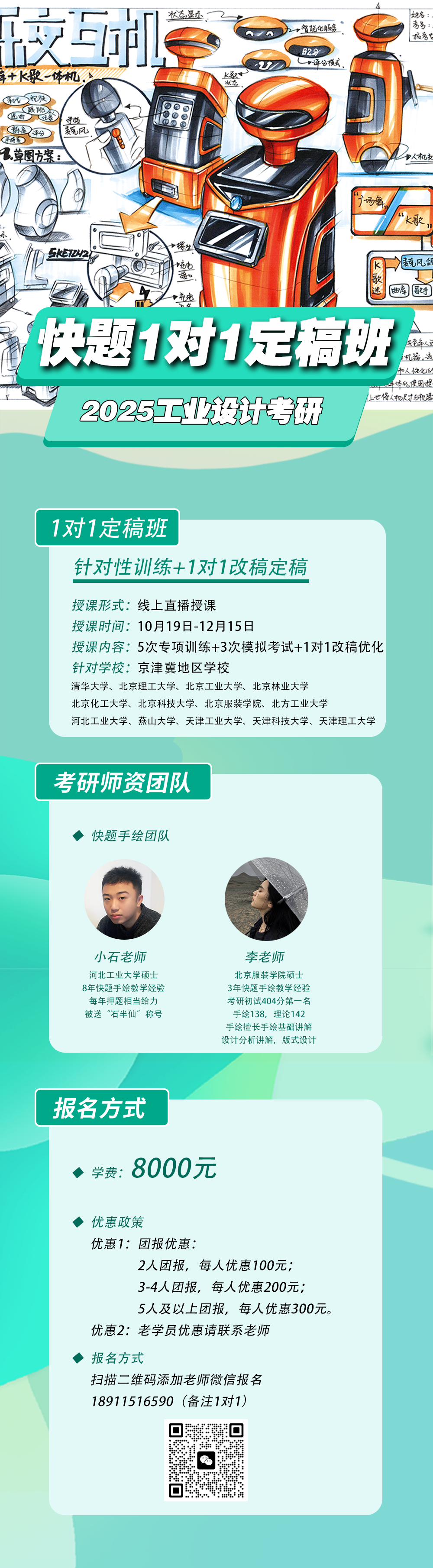 工業(yè)設(shè)計(jì)考研手繪1對1定稿班,打造快題高分卷! 發(fā)布時(shí)間:2024-09-05 上一篇:24-25年工業(yè)設(shè)計(jì)考研國慶快題班招生簡章 下一篇:第三屆“星海獎(jiǎng)”大學(xué)生海洋文化創(chuàng)意設(shè)計(jì)大賽