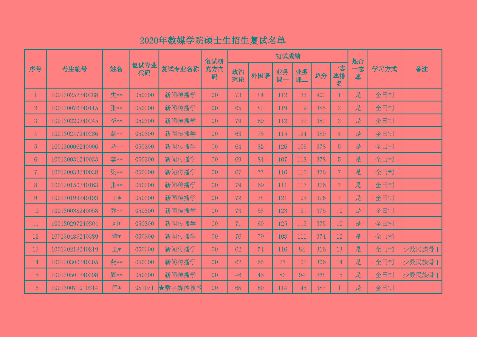 北京郵電大學(xué)數(shù)字媒體與設(shè)計(jì)藝術(shù)學(xué)院2020年考研復(fù)試名單公告