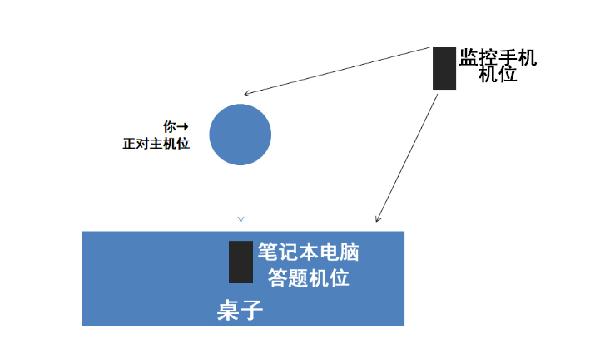 2.監(jiān)控手機(jī)機(jī)位從身體的側(cè)后方45度角,拍攝范圍內(nèi)要看得到筆記本屏幕以及書桌全景。