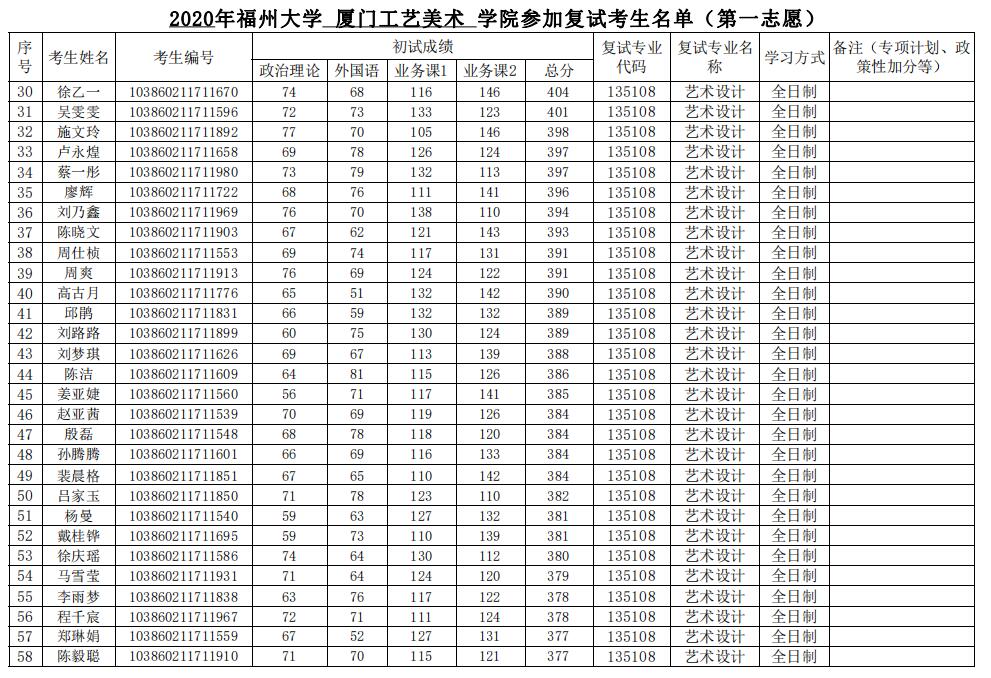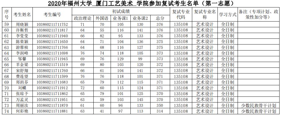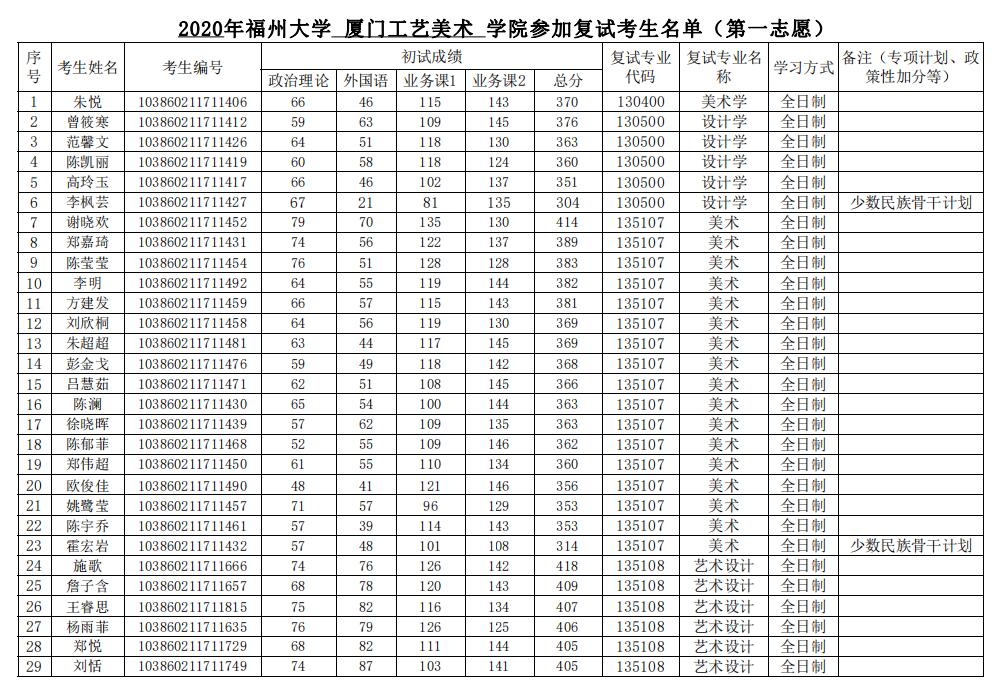 福州大學(xué)廈門工藝美術(shù)學(xué)院2020年考研復(fù)試名單公告 發(fā)布時間:2020-05-06 福州大學(xué)廈門工藝美術(shù)學(xué)院2020年考研復(fù)試名單公告 上一篇:福州大學(xué)廈門工藝美術(shù)學(xué)院2020年考研復(fù)試公告 下一篇:福州大學(xué)廈門工藝美術(shù)學(xué)院2020年考研錄取名單公示