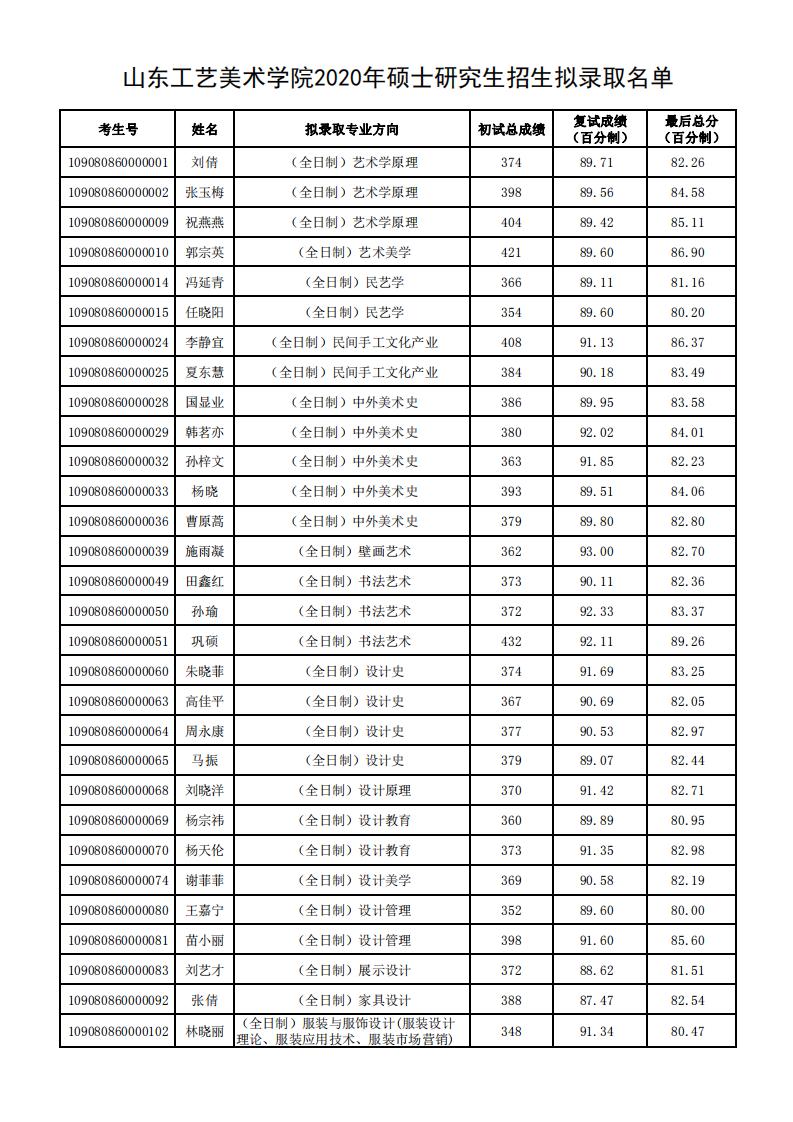 山東工藝美術(shù)學(xué)院2020年考研錄取名單公示 發(fā)布時(shí)間:2020-06-03 山東工藝美術(shù)學(xué)院2020年考研錄取名單公示 上一篇:山東工藝美術(shù)學(xué)院2020年考研復(fù)試名單公布 下一篇:山東工藝美術(shù)學(xué)院2021年考研招生目錄及參考書目