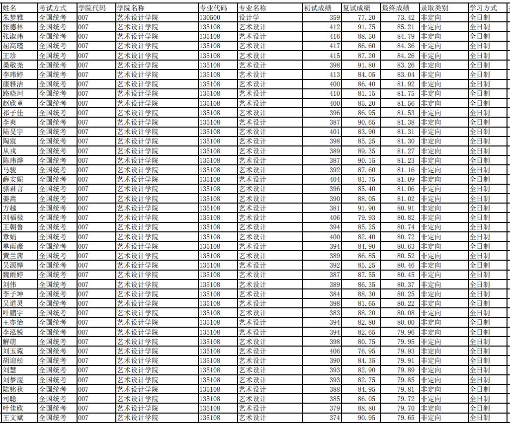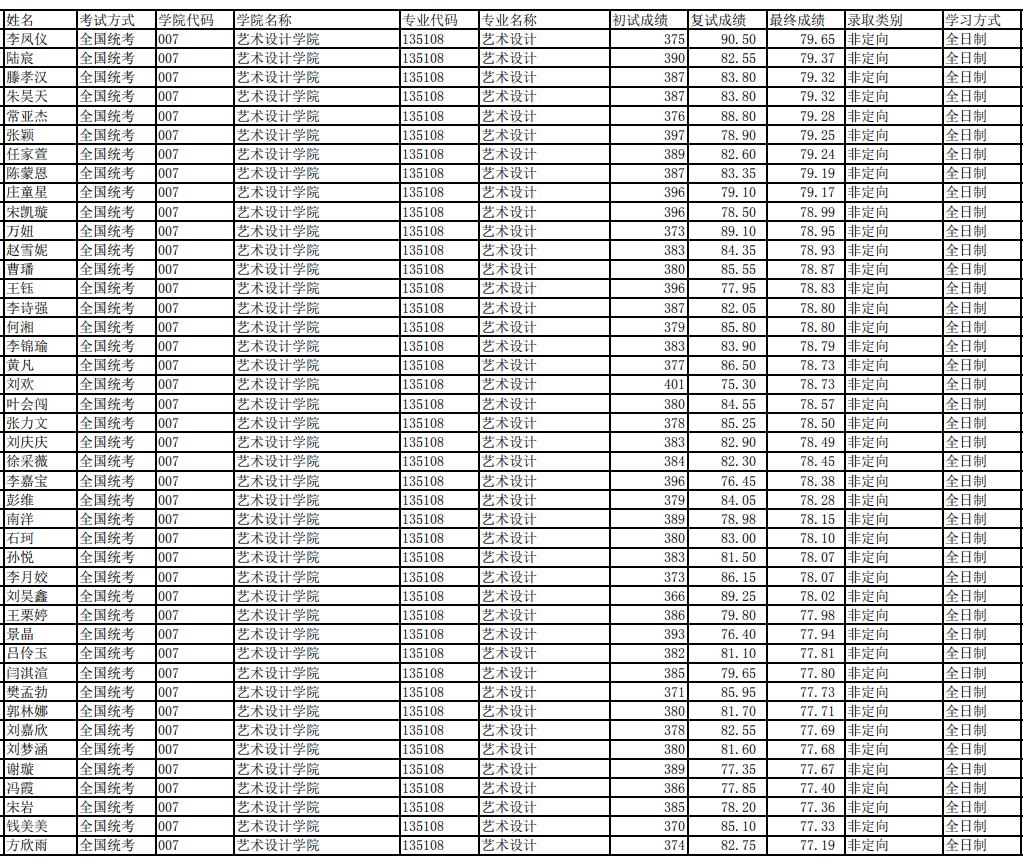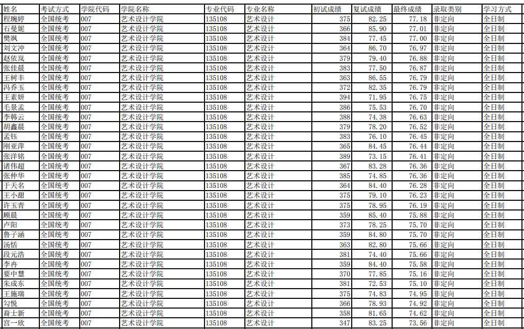 上海工程技術(shù)大學藝術(shù)設(shè)計學院2020年考研錄取名單公示