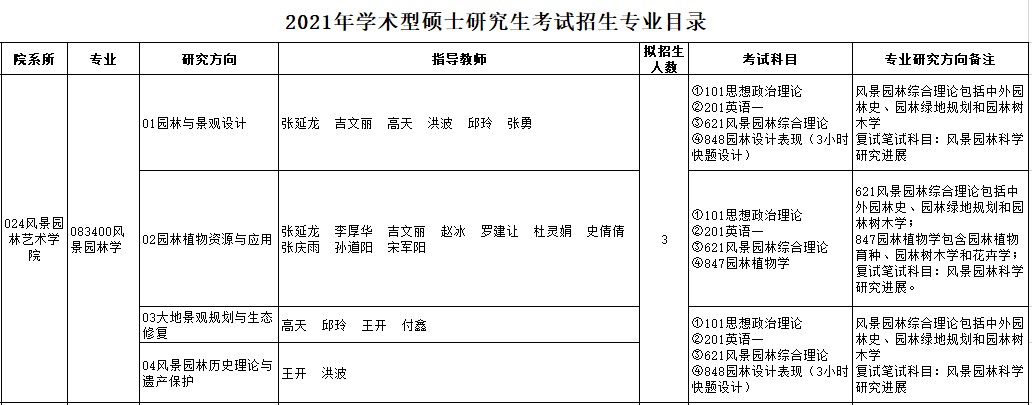 西北農(nóng)林科技大學風景園林藝術學院2021年考研招生目錄 發(fā)布時間:2020-09-14 西北農(nóng)林科技大學風景園林藝術學院2021年考研招生目錄 上一篇:風景園林藝術學院2020年考研復試成績錄取表 下一篇:西北農(nóng)林科技大學風景園林藝術學院2021年考研復試分數(shù)線及復試安排