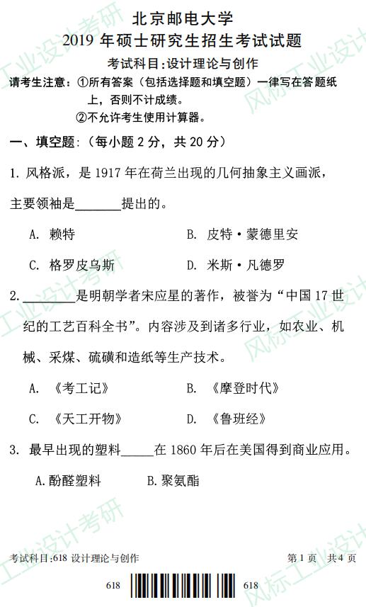 北京郵電大學(xué)2019年工業(yè)設(shè)計(jì)考研真題—設(shè)計(jì)理論與創(chuàng)作