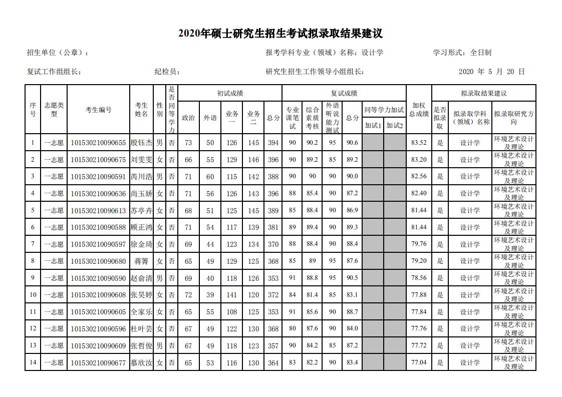沈陽建筑大學設計藝術學院2020年考研錄取名單公示 發(fā)布時間:2020-05-29 上一篇:沈陽建筑大學設計藝術學院2020年考研復試名單公示 下一篇:沈陽建筑大學設計藝術學院2020年考研招生目錄