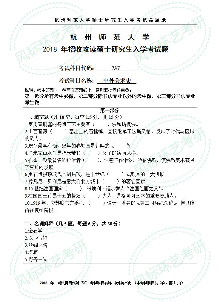 杭州師范大學美術學院2018年考研真題:737中外美術史 發(fā)布時間:2020-12-23 上一篇:杭州師范大學美術學院2019年考研真題:856專業(yè)基礎(二) 下一篇:杭州師范大學美術學院2018年考研真題:738美術史論(一)