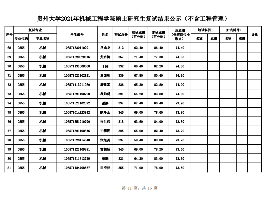 貴州大學(xué)機(jī)械工程學(xué)院2021年考研復(fù)試結(jié)果公示 發(fā)布時(shí)間:2021-03-26 貴州大學(xué)機(jī)械工程學(xué)院2021年考研復(fù)試結(jié)果公示 上一篇:貴州大學(xué)2021年考研復(fù)試分?jǐn)?shù)線公布 下一篇:貴州大學(xué)美術(shù)學(xué)院2021年考研復(fù)試安排