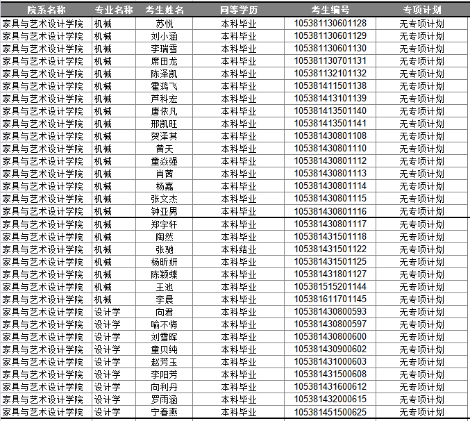 中南林業(yè)科技大學家具與藝術(shù)設(shè)計學院2021年考研復試名單公布 發(fā)布時間:2021-03-25 中南林業(yè)科技大學家具與藝術(shù)設(shè)計學院2021年考研復試名單公布 上一篇:中南林業(yè)科技大學家具與藝術(shù)設(shè)計學院2021年考研復試分數(shù)線 下一篇:中南林業(yè)科技大學家具與藝術(shù)設(shè)計學院2021年考研錄取名單公示
