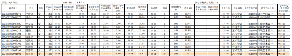 杭州師范大學(xué)美術(shù)學(xué)院2021年考研錄取名單公布(設(shè)計(jì)學(xué)、藝術(shù)設(shè)計(jì)) 發(fā)布時(shí)間:2021-04-01 杭州師范大學(xué)美術(shù)學(xué)院2021年考研錄取名單公布(設(shè)計(jì)學(xué)、藝術(shù)設(shè)計(jì)) 上一篇:杭州師范大學(xué)美術(shù)學(xué)院2021年考研復(fù)試名單公布 下一篇:杭州師范大學(xué)美術(shù)學(xué)院2022年考研招生目錄