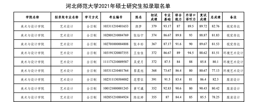河北師范大學(xué)2021年考研調(diào)劑錄取名單(美術(shù)與設(shè)計學(xué)院) 發(fā)布時間:2021-03-31 河北師范大學(xué)2021年考研調(diào)劑錄取名單(美術(shù)與設(shè)計學(xué)院) 上一篇:河北師范大學(xué)美術(shù)與設(shè)計學(xué)院2021年考研錄取名單公示 下一篇:河北師范大學(xué)美術(shù)與設(shè)計學(xué)院2022年考研招生目錄及參考書目