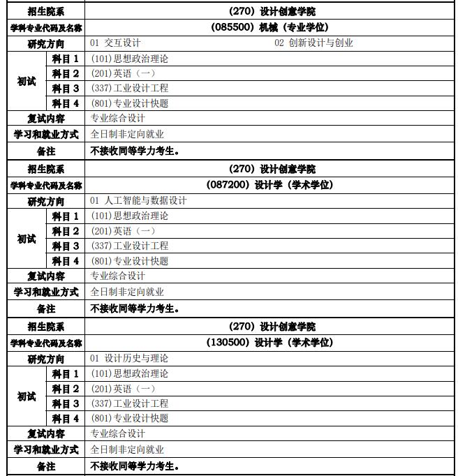 同濟(jì)大學(xué)設(shè)計(jì)創(chuàng)意學(xué)院2022年考研招生目錄