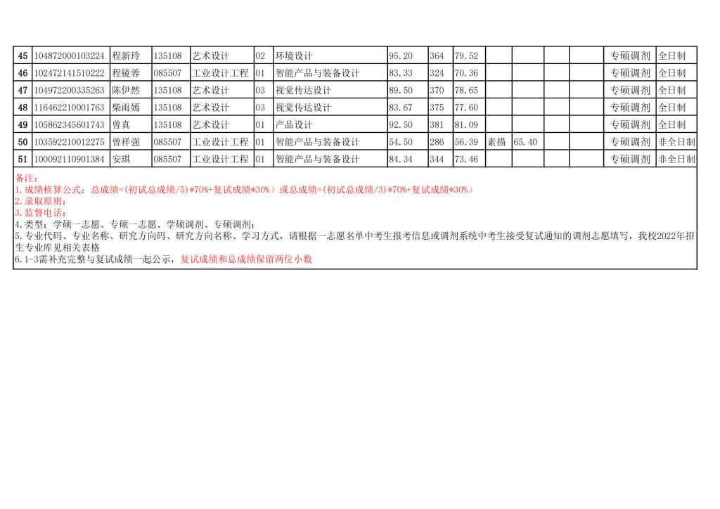 武漢工程大學藝術設計學院2022年考研復試成績公示(一志愿) 發(fā)布時間:2022-04-10 武漢工程大學藝術設計學院2022年考研復試成績公示(一志愿) 上一篇:武漢工程大學藝術設計學院2022年考研復試名單 下一篇:武漢工程大學藝術設計學院2022年考研調(diào)劑復試成績公示