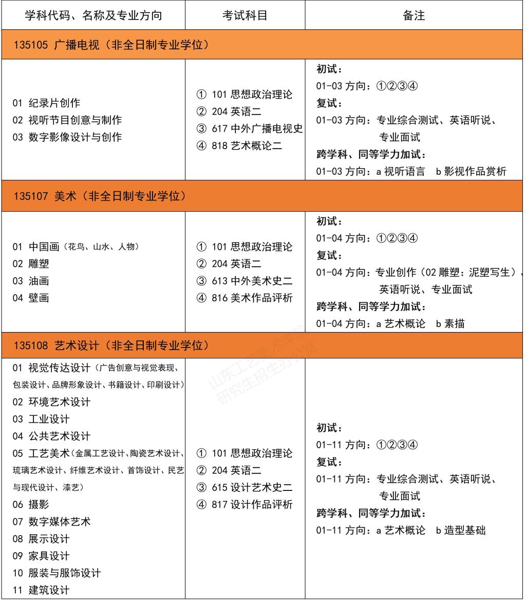 三、非全日制藝術碩士專業(yè)學位(MFA)研究生招生專業(yè)目錄和初試參考書目
