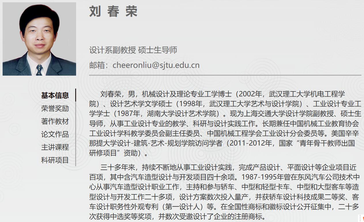 上海交通大學設(shè)計學院碩士生導師介紹(工業(yè)設(shè)計、環(huán)藝設(shè)計)