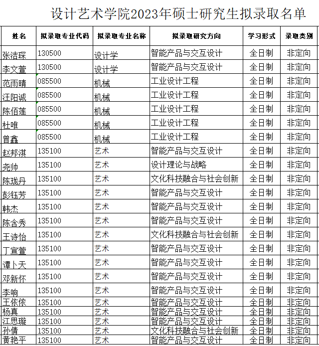湖南大學設計藝術學院2023年考研錄取名單 發(fā)布時間:2023-04-21 湖南大學設計藝術學院2023年考研錄取名單 上一篇:湖南大學設計與藝術學院2023年考研錄取名單 下一篇:湖南大學設計藝術學院2024年考研招生目錄