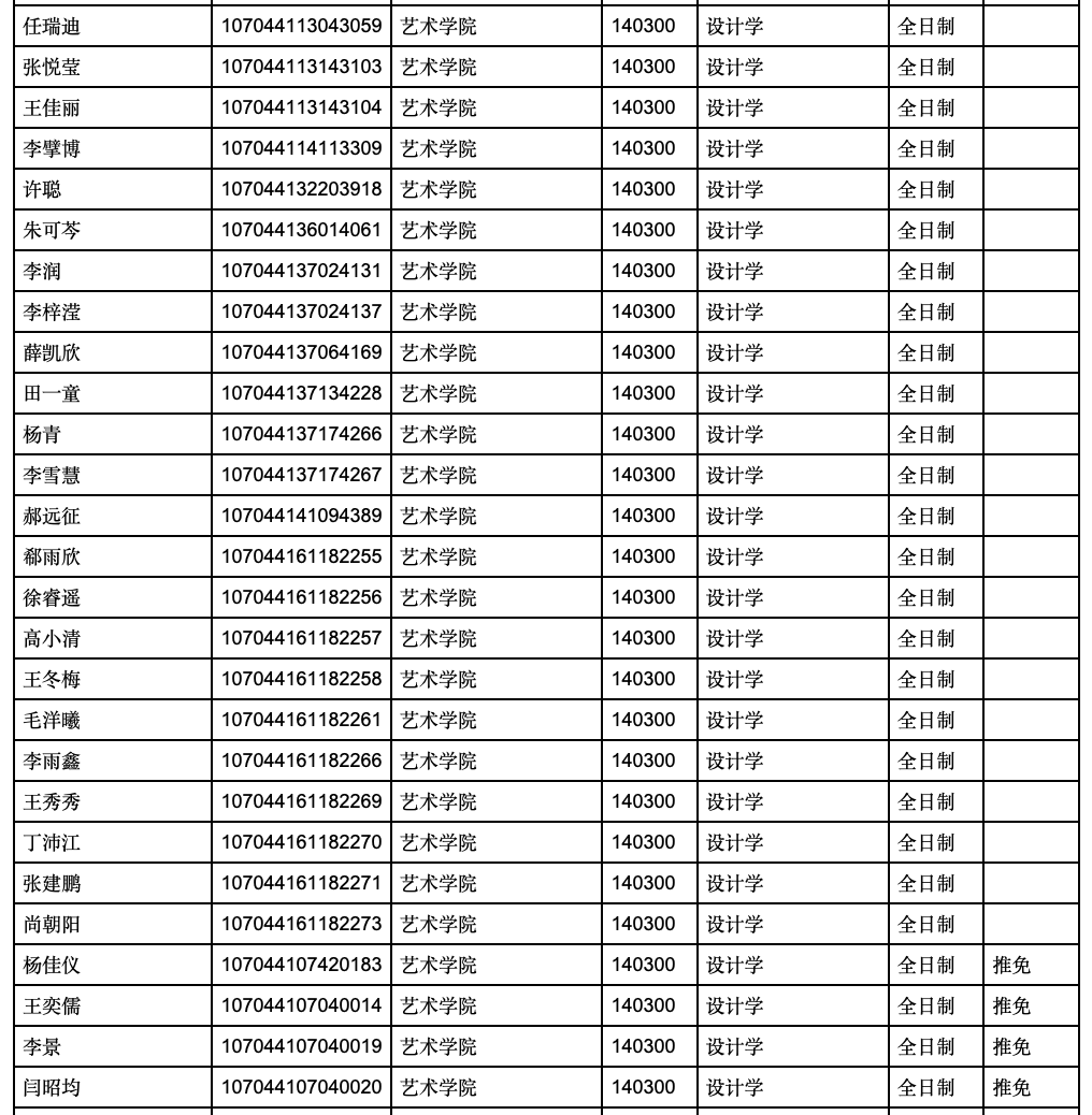 西安科技大學(xué)藝術(shù)學(xué)院2024年考研錄取名單 發(fā)布時(shí)間:2024-04-26 西安科技大學(xué)藝術(shù)學(xué)院2024年考研錄取名單 上一篇:西安科技大學(xué)藝術(shù)學(xué)院2024年考研復(fù)試分?jǐn)?shù)線 下一篇:西安科技大學(xué)藝術(shù)學(xué)院2025年保研推薦資格名單公示