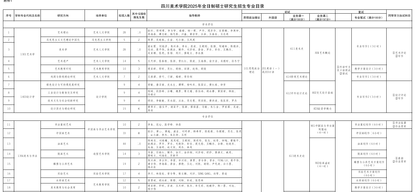 四川美術(shù)學(xué)院設(shè)計(jì)學(xué)院2025年考研招生目錄及參考書(shū)目