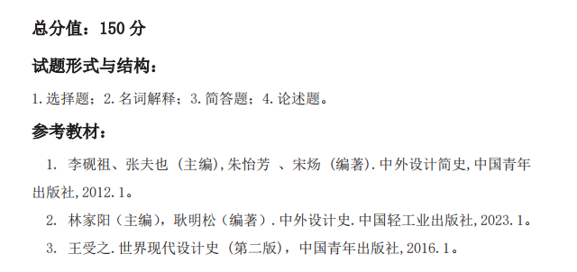 武漢輕工大學(xué)藝術(shù)設(shè)計(jì)學(xué)院2025年設(shè)計(jì)考研參考書(shū)目及考試大綱:336藝術(shù)基礎(chǔ) 發(fā)布時(shí)間:2024-10-09 上一篇:武漢輕工大學(xué)藝術(shù)設(shè)計(jì)學(xué)院2025年設(shè)計(jì)考研招生目錄及招生人數(shù) 下一篇:武漢輕工大學(xué)藝術(shù)設(shè)計(jì)學(xué)院2025年設(shè)計(jì)考研參考書(shū)目及考試大綱:920設(shè)計(jì)學(xué)專業(yè)設(shè)計(jì)