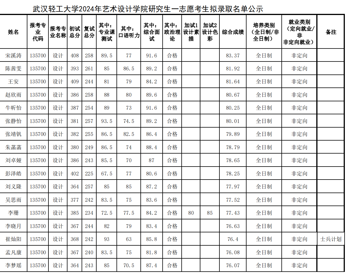 武漢輕工大學(xué)藝術(shù)設(shè)計(jì)學(xué)院2024年考研錄取名單(一志愿) 發(fā)布時(shí)間:2024-04-07 上一篇:武漢輕工大學(xué)藝術(shù)設(shè)計(jì)學(xué)院2025年設(shè)計(jì)考研參考書目及考試大綱:920設(shè)計(jì)學(xué)專業(yè)設(shè)計(jì) 下一篇:武漢輕工大學(xué)藝術(shù)設(shè)計(jì)學(xué)院2024年考研錄取名單(調(diào)劑)