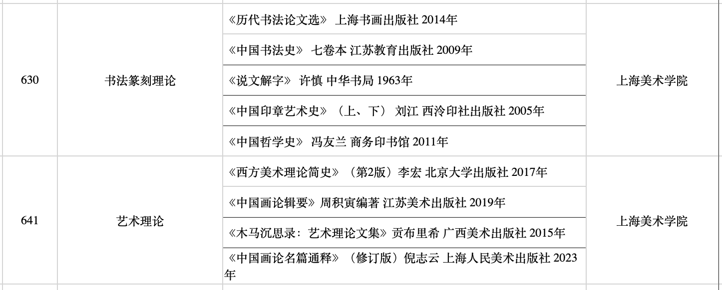 上海大學(xué)美術(shù)學(xué)院2025年考研參考書目 發(fā)布時(shí)間:2024-10-08 上一篇:上海大學(xué)美術(shù)學(xué)院2025年考研招生人數(shù) 下一篇:上海大學(xué)美術(shù)學(xué)院2025年保研擬錄取名單