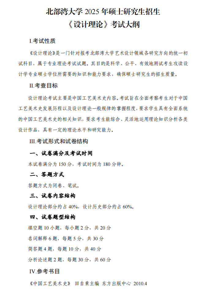 北部灣大學(xué)陶瓷與設(shè)計(jì)學(xué)院2025年設(shè)計(jì)考研參考書目及考試大綱:設(shè)計(jì)理論