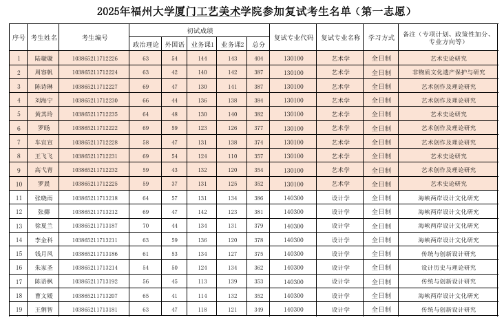 福州大學廈門工藝美術學院2025年考研復試名單 發(fā)布時間:2025-03-27 福州大學廈門工藝美術學院2025年考研復試名單 上一篇:福州大學廈門工藝美術學院2025年考研復試分數線及招生人數 下一篇:沒有了