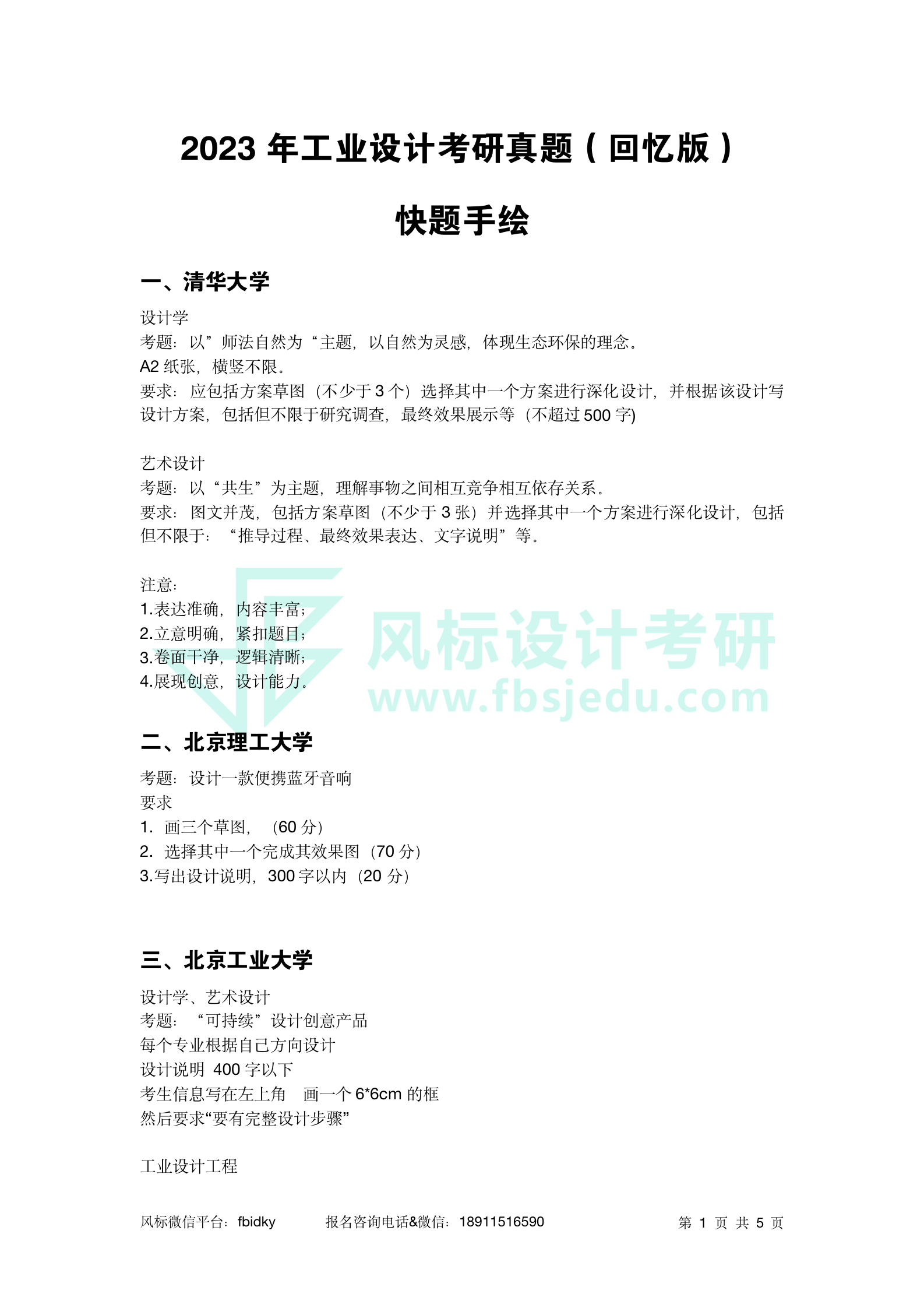 2023年工業(yè)設計考研真題(回憶版):快題手繪 發(fā)布時間:2022-12-26 2023年工業(yè)設計考研真題(回憶版):快題手繪 上一篇:經驗分享 || 100天考上北方工業(yè)大學工業(yè)設計工程碩士生之心路歷程?。?! 下一篇:西安美術學院2023年考研真題(回憶版):美術類