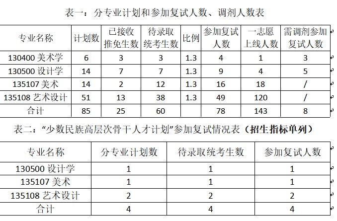 美術(shù)學、設(shè)計學兩個一志愿合格生源不足的專業(yè),需要調(diào)劑,調(diào)劑辦法另行通知,請查閱學院網(wǎng)站(http://art.fzu.edu.cn/html/zsxx/yjszs)《福州大學廈門工藝美術(shù)學院2020年招收碩士研究生調(diào)劑工作辦法》。
