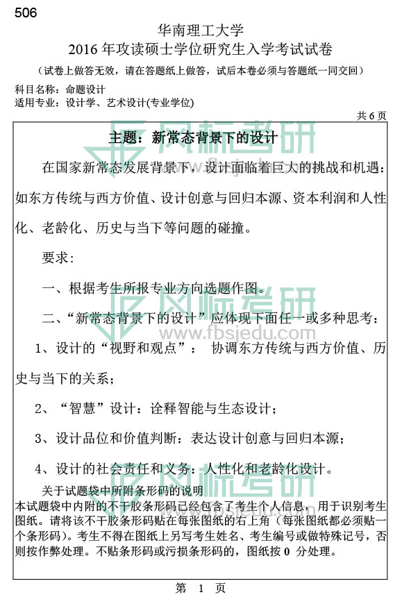 華南理工大學(xué)設(shè)計(jì)學(xué)院景觀規(guī)劃與設(shè)計(jì)考研2016年真題:506命題設(shè)計(jì)