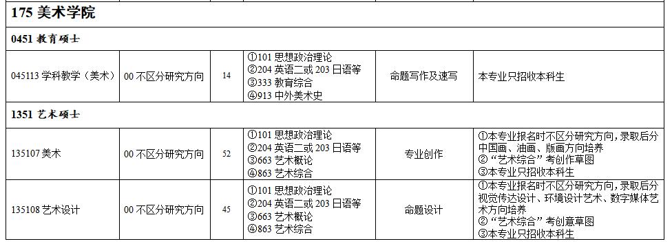 浙江師范大學(xué)美術(shù)學(xué)院2021年考研招生目錄及參考書目 發(fā)布時間:2020-09-16 663藝術(shù)概論:藝術(shù)學(xué)概論,彭吉象,北京大學(xué)出版社,2006年版;藝術(shù)概論,王宏建,文化藝術(shù)出版社,2000年版863藝術(shù)綜合:中國美術(shù)簡史/外國美術(shù)簡史,中央美院中、外美史教研室編,中國青年出版社 上一篇:浙江師范大學(xué)美術(shù)學(xué)院簡介 下一篇:浙江師范大學(xué)美術(shù)學(xué)院2021年考研考試大綱:863藝術(shù)綜合