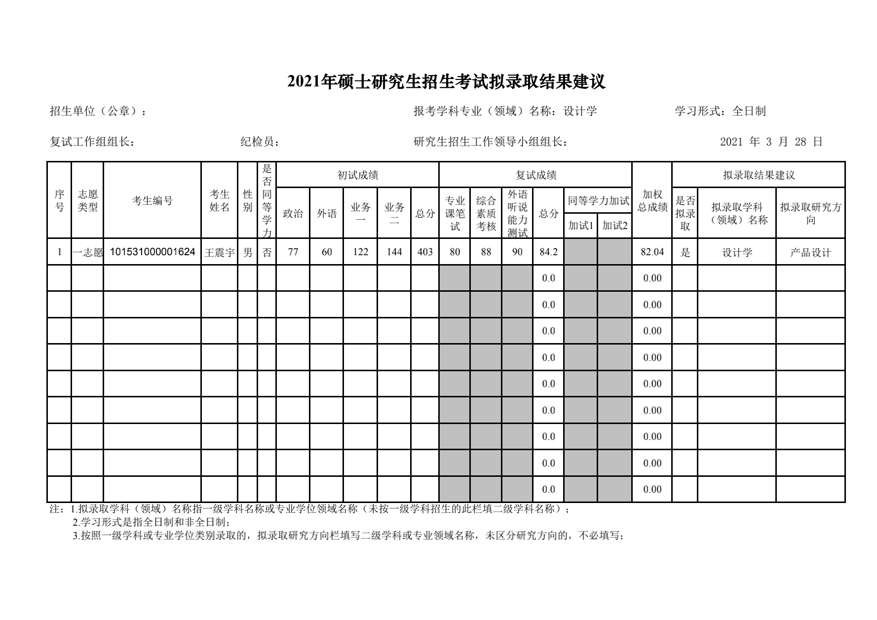沈陽建筑大學(xué)設(shè)計藝術(shù)學(xué)院2021年考研錄取名單公布 發(fā)布時間:2021-03-27 沈陽建筑大學(xué)設(shè)計藝術(shù)學(xué)院2021年考研錄取名單公布 上一篇:沈陽建筑大學(xué)設(shè)計藝術(shù)學(xué)院2021年考研招生計劃變更 下一篇:沈陽建筑大學(xué)設(shè)計藝術(shù)學(xué)院2022年考研招生目錄
