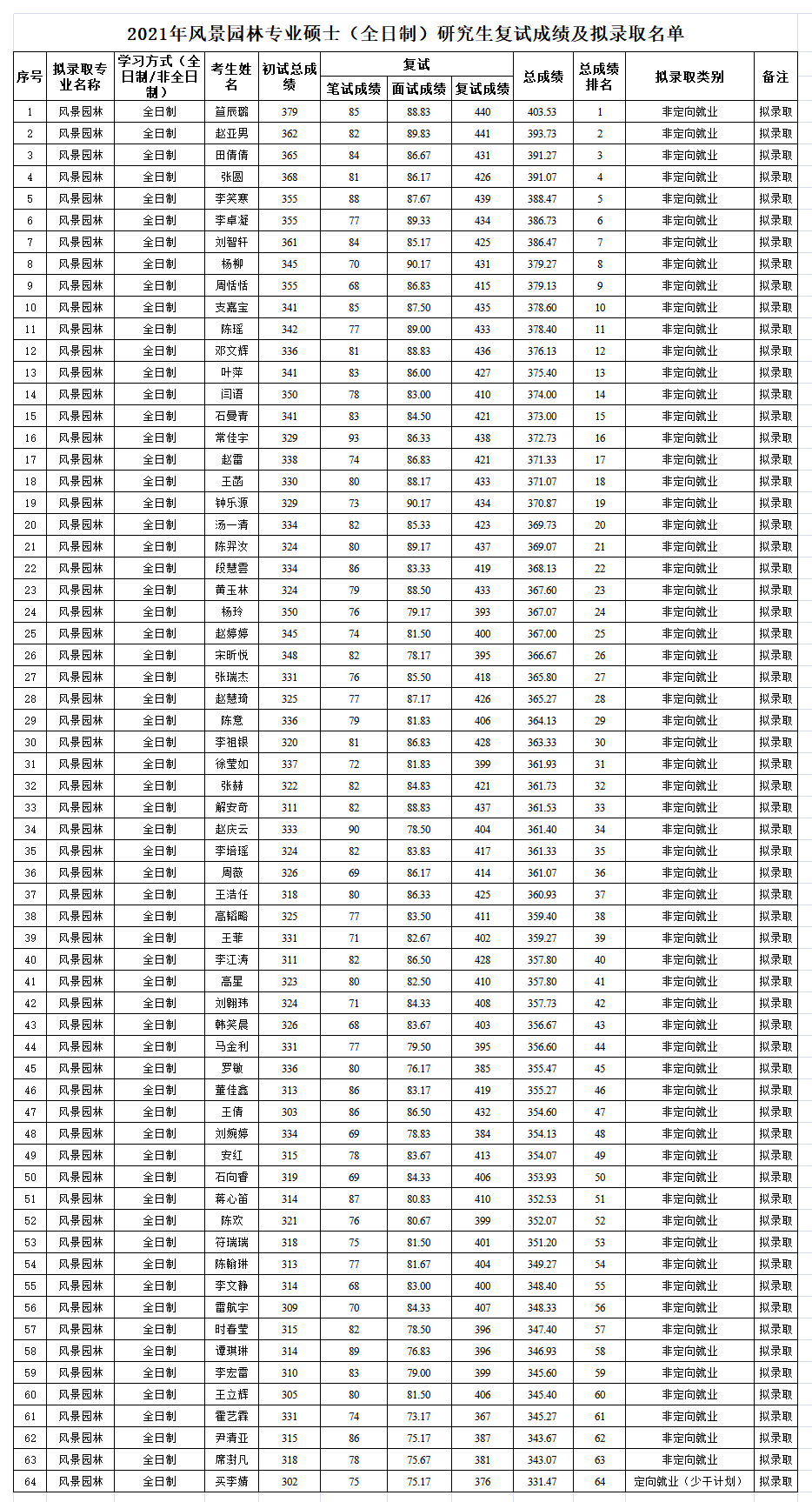 西北農(nóng)林科技大學(xué)風(fēng)景園林藝術(shù)學(xué)院2021年考研錄取名單公布 發(fā)布時間:2021-04-02 西北農(nóng)林科技大學(xué)風(fēng)景園林藝術(shù)學(xué)院2021年考研錄取名單公布 上一篇:西北農(nóng)林科技大學(xué)風(fēng)景園林藝術(shù)學(xué)院2021年考研復(fù)試名單公布 下一篇:西北農(nóng)林科技大學(xué)風(fēng)景園林藝術(shù)學(xué)院2022年考研招生目錄