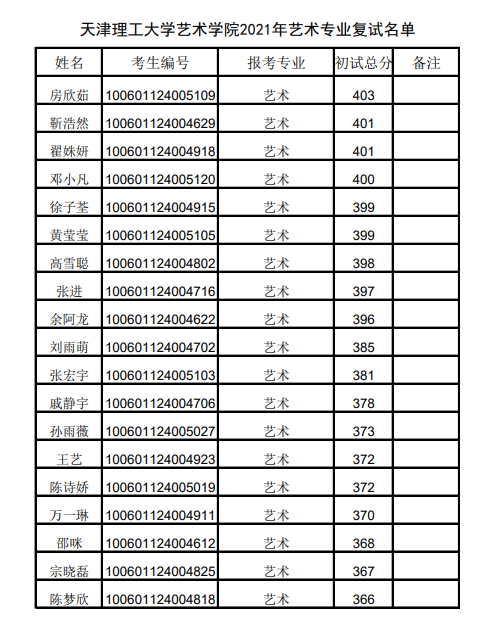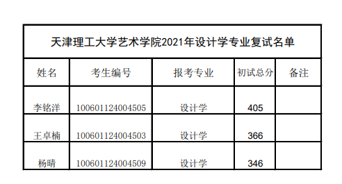 天津理工大學(xué)藝術(shù)設(shè)計學(xué)院2021年考研復(fù)試名單公布(一志愿)
