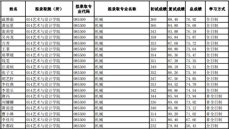 安徽工業(yè)大學(xué)藝術(shù)與設(shè)計(jì)學(xué)院2020年考研錄取名單公示