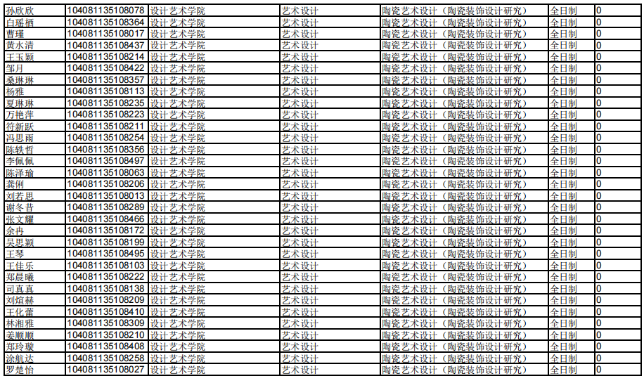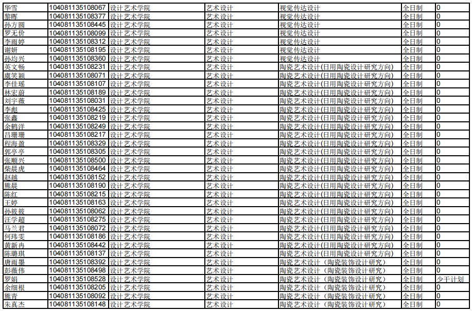 景德鎮(zhèn)陶瓷大學設計藝術學院2021年考研錄取名單公示 發(fā)布時間:2021-04-29 景德鎮(zhèn)陶瓷大學設計藝術學院2021年考研錄取名單公示 上一篇:景德鎮(zhèn)陶瓷大學設計藝術學院2021年考研復試名單公布 下一篇:景德鎮(zhèn)陶瓷大學設計藝術學院2022年考研招生目錄及參考書目