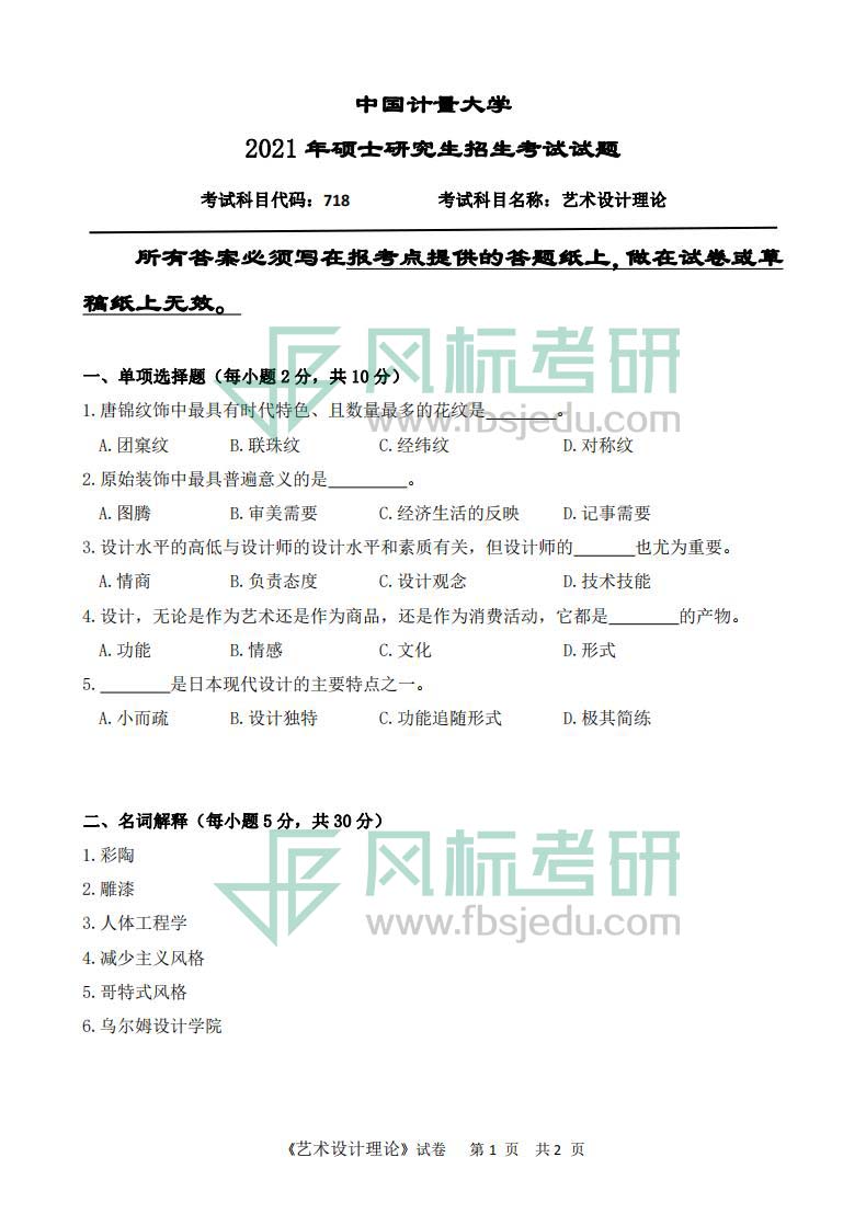 中國計量大學藝術(shù)與傳媒學院2021年考研真題:718藝術(shù)設(shè)計理論 發(fā)布時間:2021-09-13 上一篇:中國計量大學藝術(shù)與傳媒學院2020年考研真題:718藝術(shù)設(shè)計理論 下一篇:中國計量大學藝術(shù)與傳媒學院2021年考研真題:818快題設(shè)計