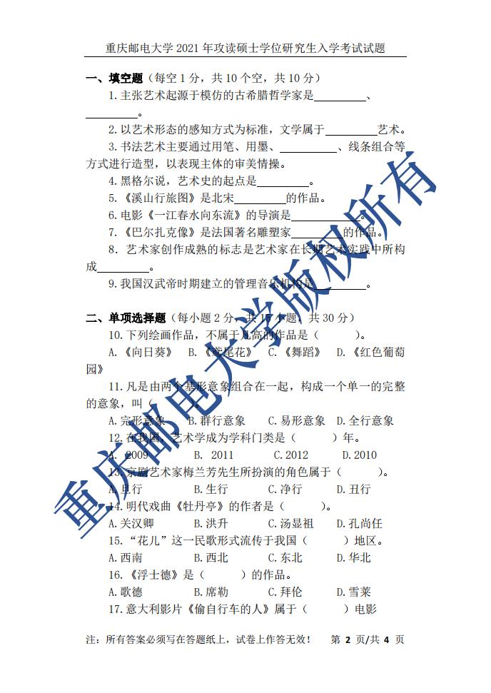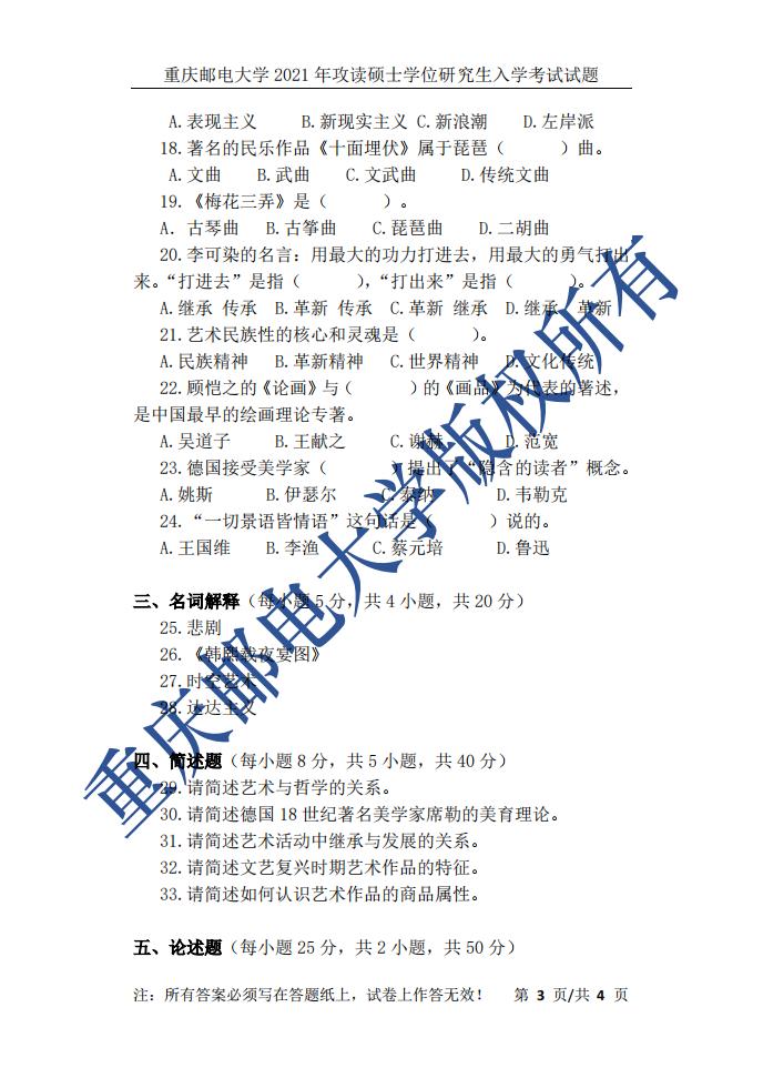 重慶郵電大學(xué)藝術(shù)學(xué)院2021年考研真題:613藝術(shù)綜合 發(fā)布時(shí)間:2021-10-04 上一篇:重慶郵電大學(xué)藝術(shù)學(xué)院2021年考研真題:821藝術(shù)設(shè)計(jì)理論(A) 下一篇:重慶郵電大學(xué)2022年考研復(fù)試分?jǐn)?shù)線