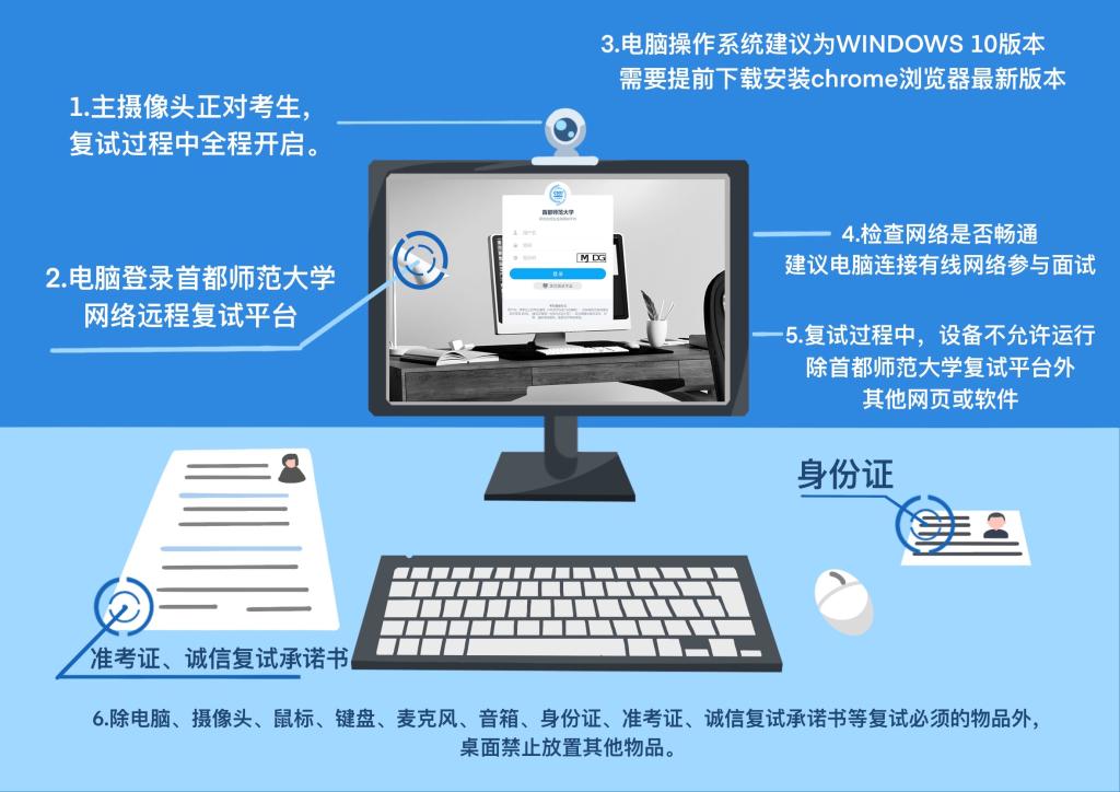 7.復(fù)試過(guò)程中,首都師范大學(xué)網(wǎng)絡(luò)遠(yuǎn)程復(fù)試平臺(tái)將采集考生圖像信息,運(yùn)用“人臉識(shí)別”、“人證識(shí)別”技術(shù),綜合比對(duì)考生與“報(bào)考庫(kù)”、“學(xué)籍學(xué)歷庫(kù)”、“人口信息庫(kù)”、“考生考試誠(chéng)信檔案庫(kù)”中信息,加強(qiáng)對(duì)考生身份的審查核驗(yàn),確保公平公正。