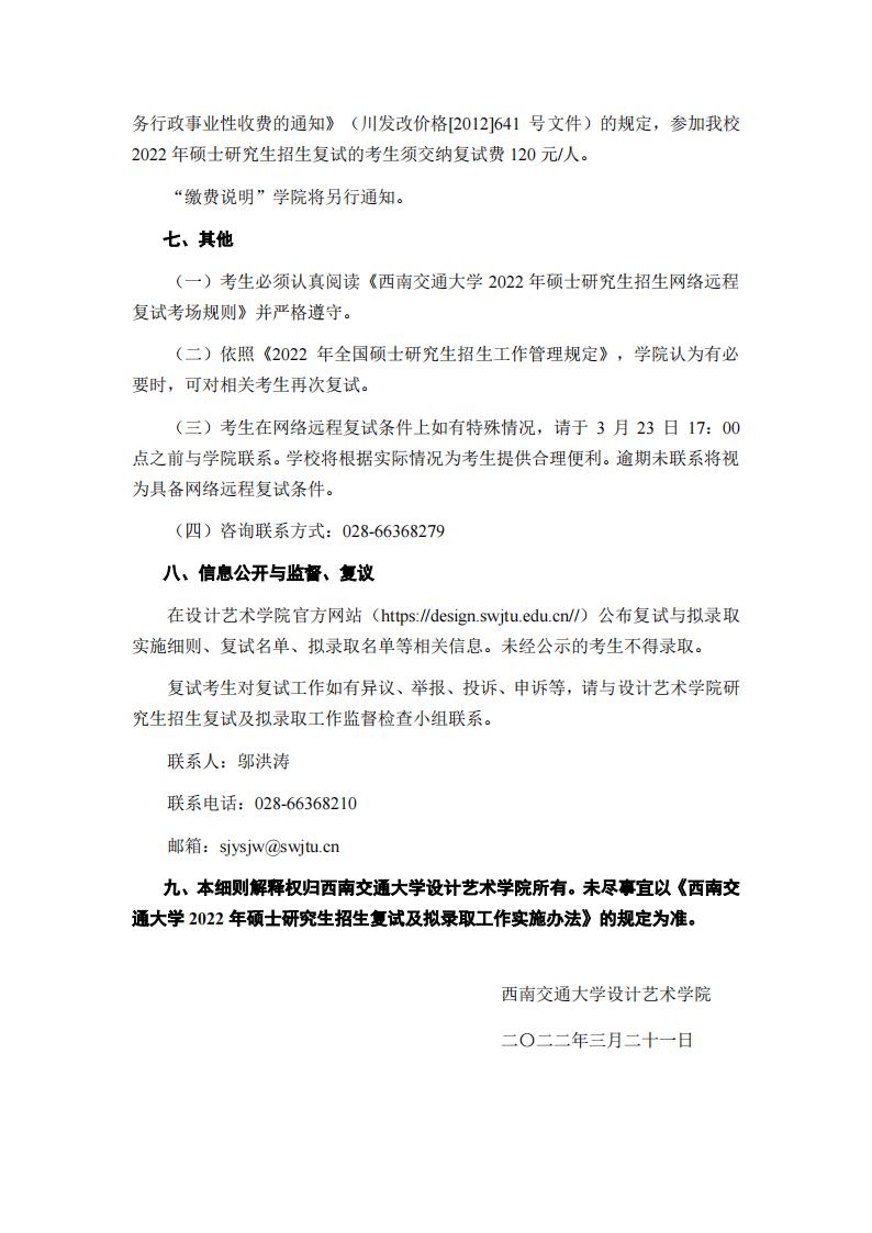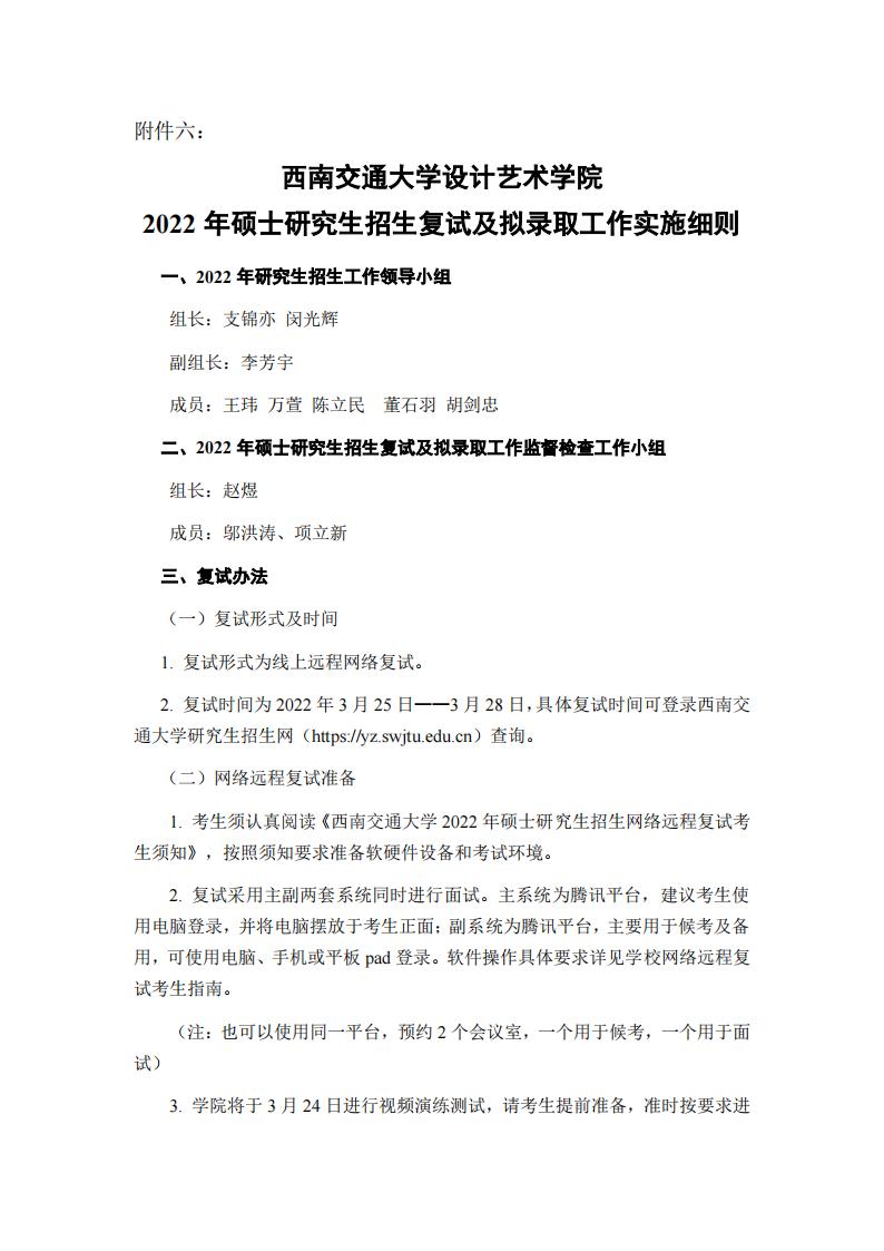 西南交通大學設(shè)計藝術(shù)學院2022年考研復(fù)試安排 發(fā)布時間:2022-03-22 西南交通大學設(shè)計藝術(shù)學院2022年考研復(fù)試安排 上一篇:西南交通大學2022年考研復(fù)試及擬錄取工作實施辦法 下一篇:西南交通大學設(shè)計藝術(shù)學院2022年考研復(fù)試名單