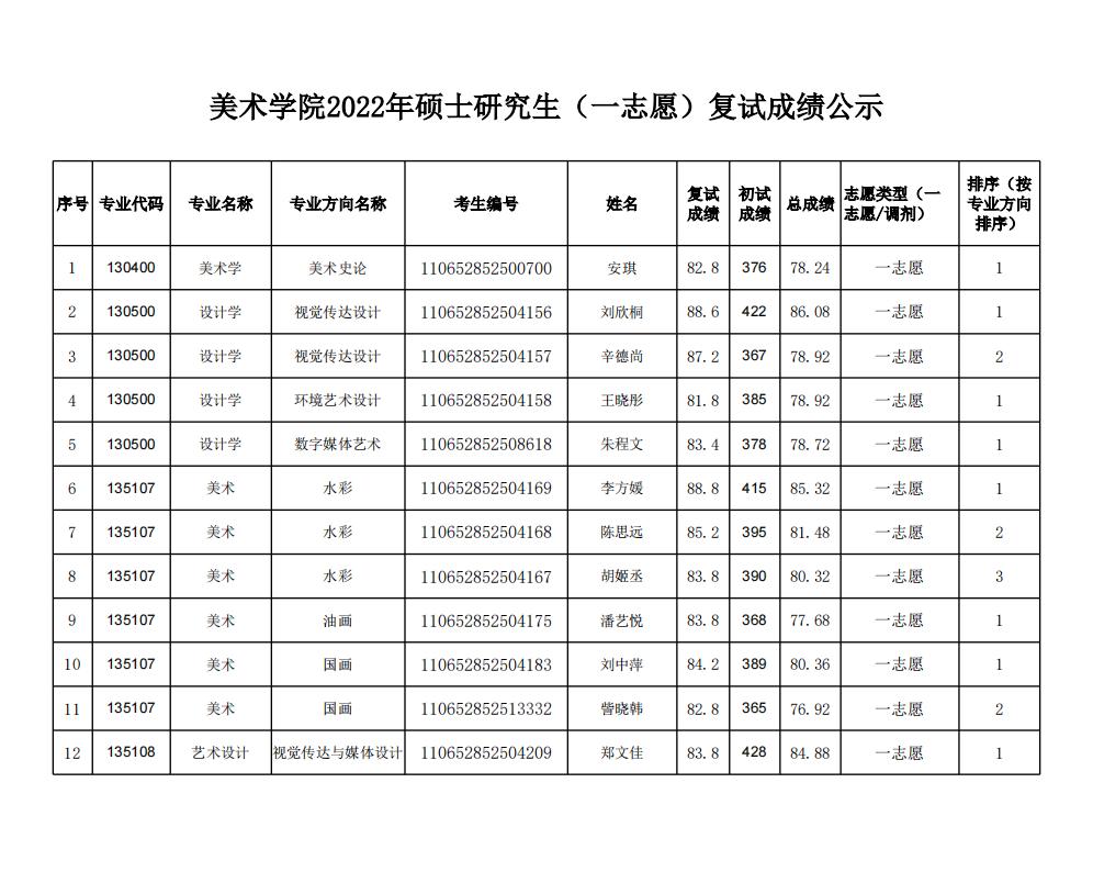 青島大學(xué)美術(shù)學(xué)院2022年考研(一志愿)復(fù)試成績公示