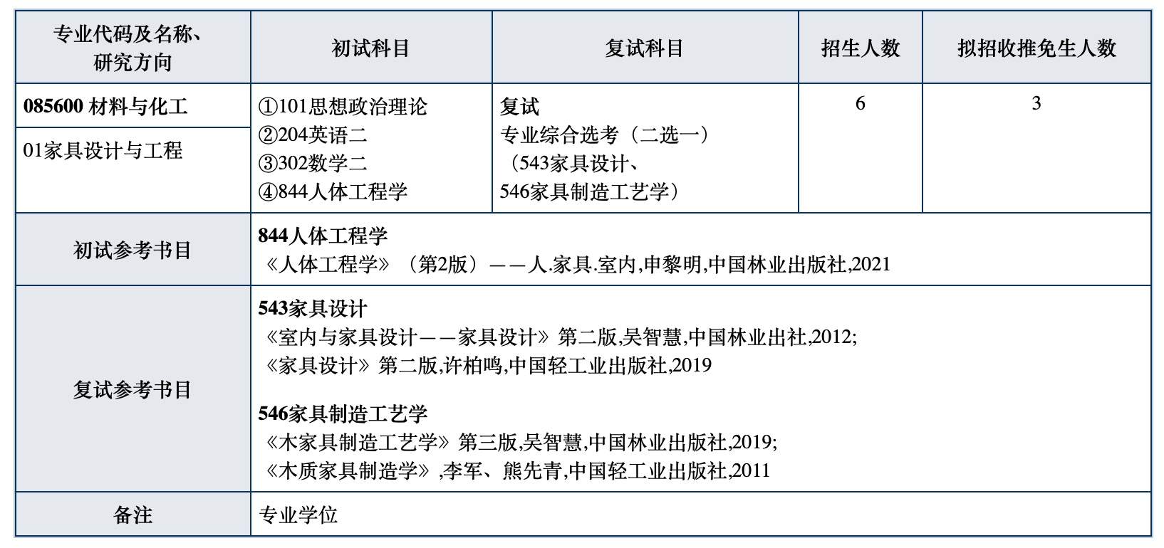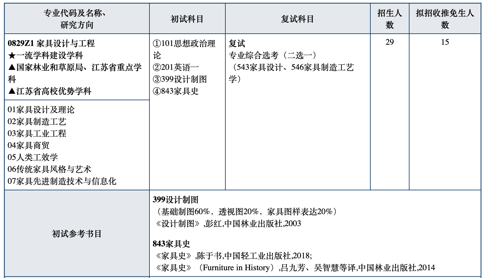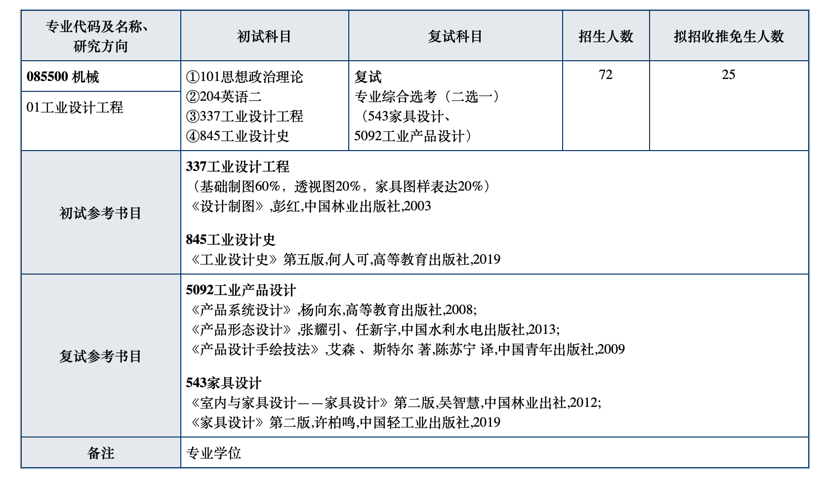 南京林業(yè)大學家具與工業(yè)設(shè)計學院2023年考研招生目錄及參考書目 發(fā)布時間:2022-09-15 南京林業(yè)大學家具與工業(yè)設(shè)計學院2023年考研招生目錄及參考書目更多考研信息請微信:189115156590(備注南林喲) 上一篇:南京林業(yè)大學家具與工業(yè)設(shè)計學院2022年考研擬錄取名單 下一篇:南京林業(yè)大學藝術(shù)設(shè)計學院2023年考研招生目錄及參考書目
