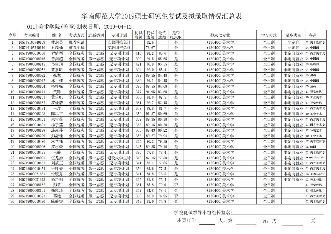 華南師范大學(xué)美術(shù)學(xué)院2019年考研錄取名單公示