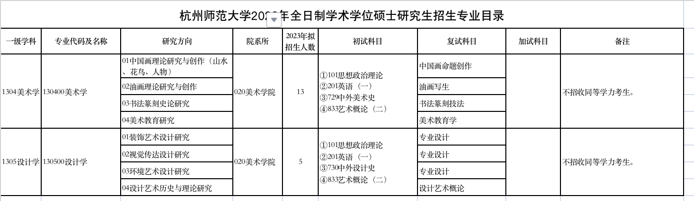 杭州師范大學美術(shù)學院2023年考研招生目錄 發(fā)布時間:2022-09-15 杭州師范大學美術(shù)學院2023年考研招生目錄更多考研信息咨詢微信18911516590(龔老師) 上一篇:杭州師范大學美術(shù)學院2022年考研錄取名單 下一篇:杭州師范大學2023年考研考試大綱-835專業(yè)基礎(chǔ)