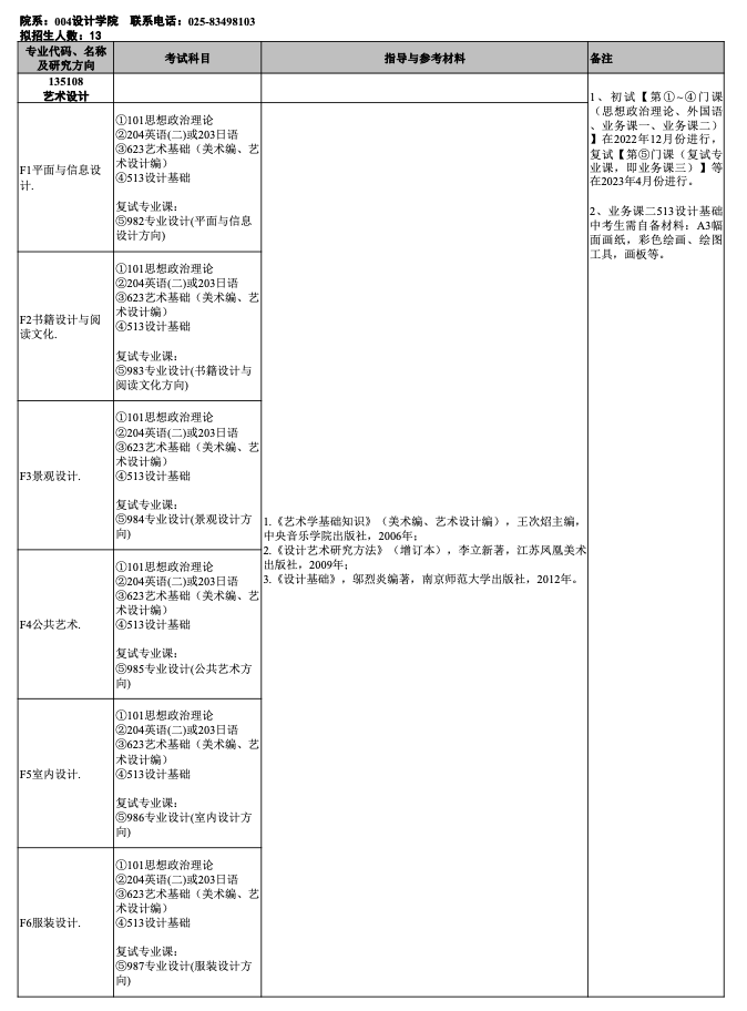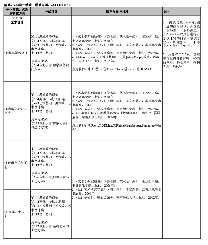 南京藝術(shù)學(xué)院設(shè)計(jì)學(xué)院2023年考研招生目錄(非全日制)