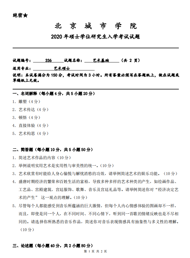 北京城市學(xué)院2020年藝術(shù)設(shè)計考研真題:336藝術(shù)基礎(chǔ) 發(fā)布時間:2020-09-21 北京城市學(xué)院2020年藝術(shù)設(shè)計考研真題:336藝術(shù)基礎(chǔ)更多藝術(shù)設(shè)計考研信息咨詢18911516590 上一篇:北京城市學(xué)院2022年考研復(fù)試分?jǐn)?shù)線 下一篇:北京城市學(xué)院2020年藝術(shù)設(shè)計考研真題:801藝術(shù)設(shè)計概論