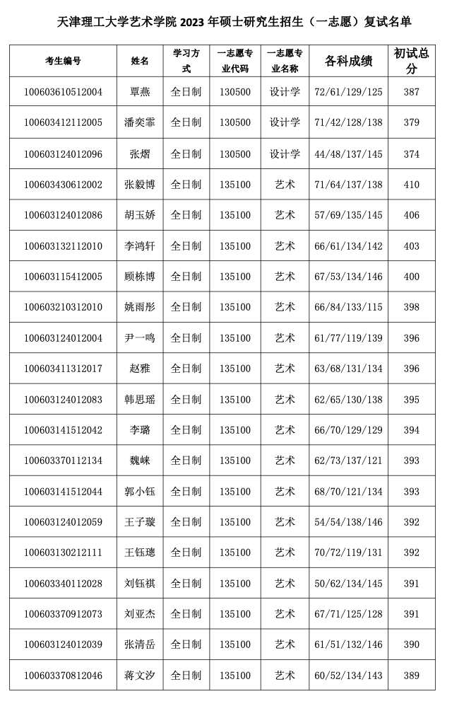 天津理工大學(xué)藝術(shù)學(xué)院2023年考研復(fù)試名單公示 發(fā)布時(shí)間:2023-03-29 天津理工大學(xué)藝術(shù)學(xué)院2023年考研復(fù)試名單公示 上一篇:天津理工大學(xué)藝術(shù)學(xué)院2023年考研復(fù)試分?jǐn)?shù)線及招生人數(shù) 下一篇:天津理工大學(xué)藝術(shù)學(xué)院2023年考研錄取名單(一志愿)