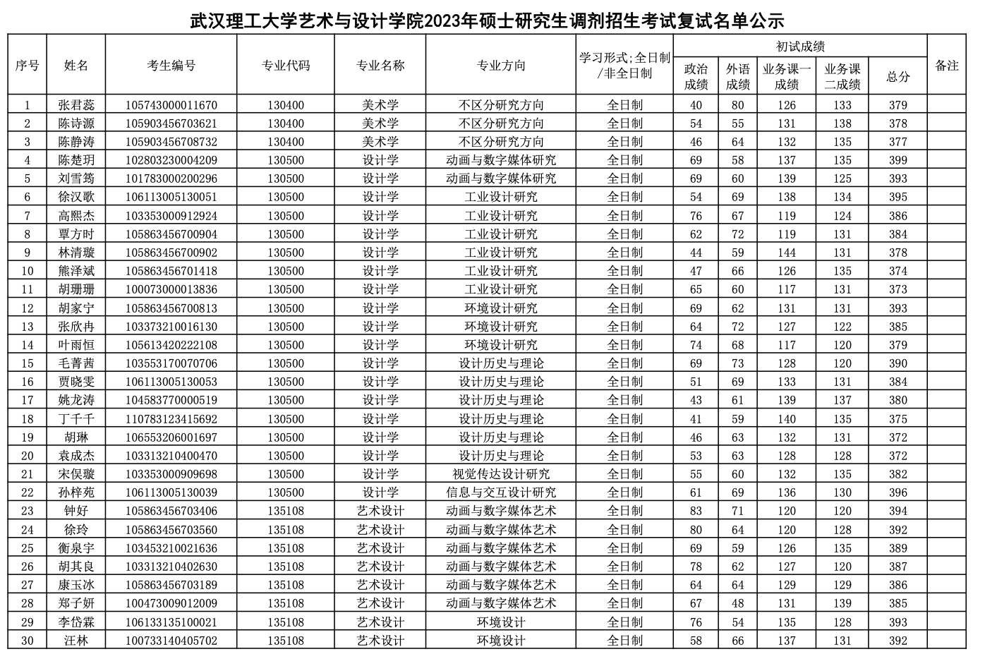 武漢理工大學(xué)藝術(shù)與設(shè)計學(xué)院2023年考研調(diào)劑復(fù)試名單 發(fā)布時間:2023-04-07 武漢理工大學(xué)藝術(shù)與設(shè)計學(xué)院2023年考研調(diào)劑復(fù)試名單 上一篇:武漢理工大學(xué)藝術(shù)與設(shè)計學(xué)院2023年考研復(fù)試成績結(jié)果公示 下一篇:武漢理工大學(xué)藝術(shù)設(shè)計學(xué)院2023年考研錄取名單