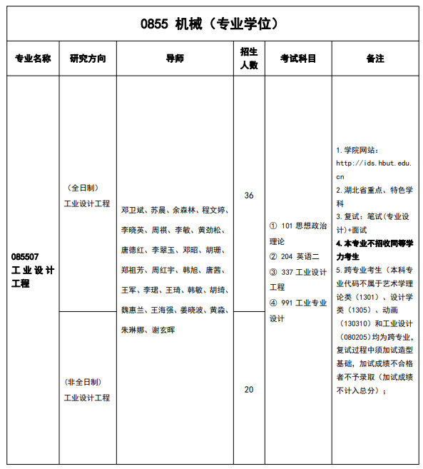 湖北工業(yè)大學(xué)工業(yè)設(shè)計(jì)學(xué)院2024年考研招生目錄 發(fā)布時(shí)間:2023-09-19 湖北工業(yè)大學(xué)工業(yè)設(shè)計(jì)學(xué)院2024年考研招生目錄 上一篇:湖北工業(yè)大學(xué)藝術(shù)設(shè)計(jì)學(xué)院2024年考研招生目錄 下一篇:湖北工業(yè)大學(xué)2024年考研考試大綱:337工業(yè)設(shè)計(jì)工程